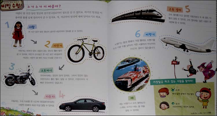 책을 읽으면서 5살 민서가 "엄마~ 자전거랑 오토바이 중에서 어느게 제일 빠를까요?"하네요