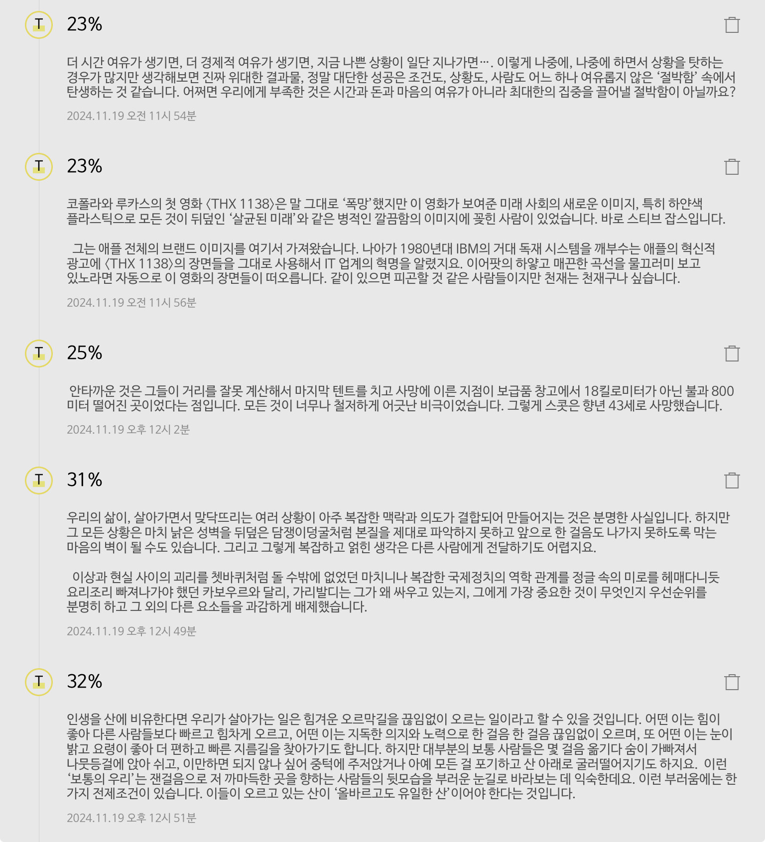 막상 펼치니 껍데기만 그렇게 보였을 뿐, 읽는 내내 나를 빡치게 하는 같은 말 반복하는 자기계발서들이랑은 결이 달랐다. 내내 알고 있던 스토리텔링 풍부한, 내가 좋아하는 입담 좋은 이야기꾼의 이야기 모음이었다. 그래서 와, 너무 재미있어… 재미있는데 뭔가 유익하기 까지… 이러고 후다닥 읽어버렸다. 시작은 비틀즈에서 제일 쩌리 같았던 링고스타가 사실은 위너 아니냐...하는 데서부터 이런저런 음악인들, 영화인들, 위인들 썰을 시시콜콜 풀어주면서도 거기서 우리가 돌아볼 만한 이야기들을 나눠주는게 나처럼 망한 애들이 이 시절에 읽기 맞춤한 책이었다.