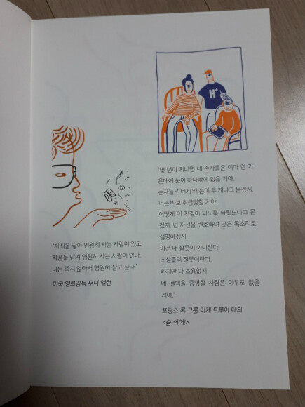 '자식은 낳아 영원히 사는 사람이 있고 작품을 남겨 영원히 사는 사람도 있다.'는 이해는 가는데, 개인적으로 는 죽지 않아서 영원히 살고 싶다'는 좀...