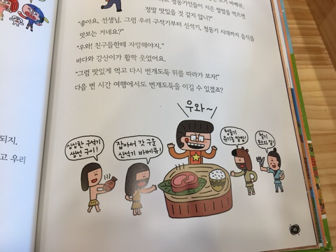 마지막장 큰별쌤이 입맛 다시는한장의 일러스트로 1권에서 다룬 선사시대와 철기시대를 함축.