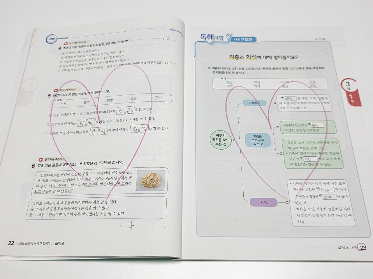 진짜 문해력 향상을 위한 교재!초등국어문제집초등 문해력 독해가 힘이다 비문학편을 시작했어요.책을 많이 읽고 좋아해도글을 구조적으로 파악하고 핵심을 뽑아내는 기술은꼭 필요하더라고요.한 주에 하나씩 문해 기술을 익히고다양한 비문학 글들을 통해서 접목시켜가며문해력과 독해력을 모두 잡고 있습니다.비문학 글들도 재미있어하고QR코드 영상까지 알차게 활용할 수 있어