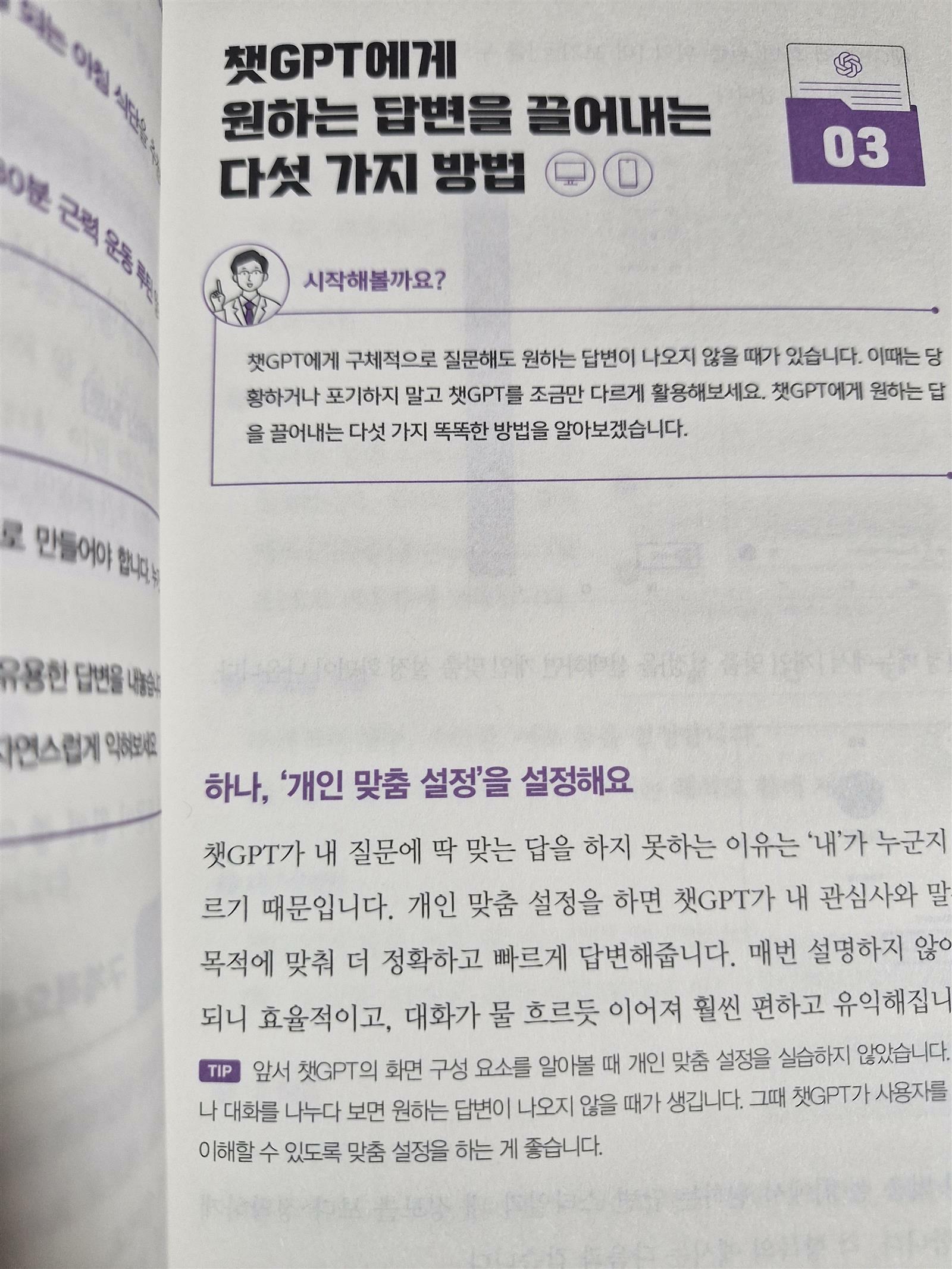 챗GPT가 잘하는 것과 못하는 것을 명확히 구분해서 설명하는 부분도 눈에 들어왔어요. 다방면으로 활용되고 있고 뛰어난 기술력도 좋지만 여전히 부족한 면들이 있고 개선이 필요한 부분들도 있는만큼 무조건적인 신뢰보다 올바른 이해가 먼저라는 저자의 시각에 공감이 되었고, AI를 맹목적으로 따르는 것이 아니라 도구로서 주도적으로 효율적으로 잘 활용해볼 수 있는 태도를 강조한 점이 좋았습니다.