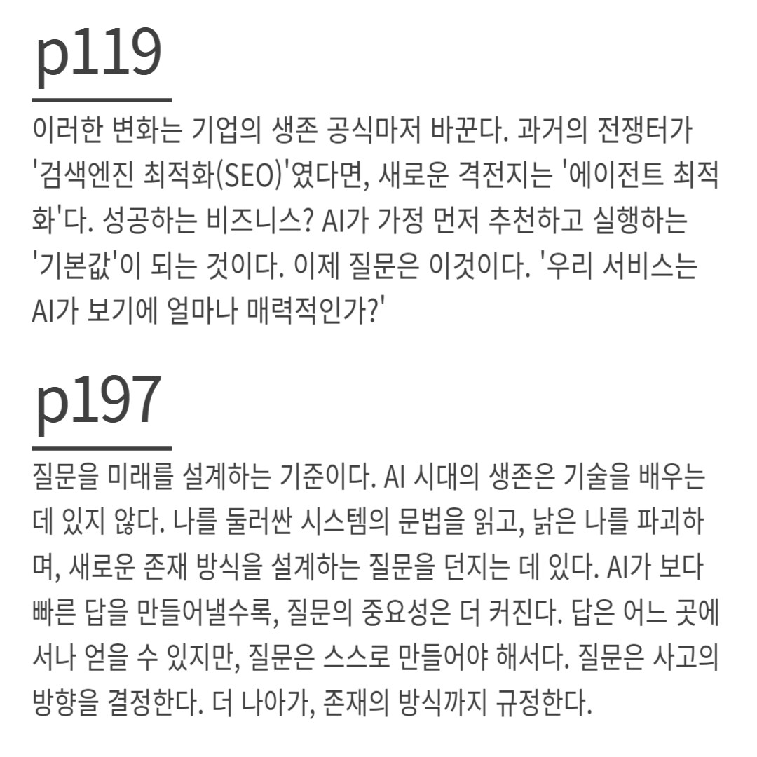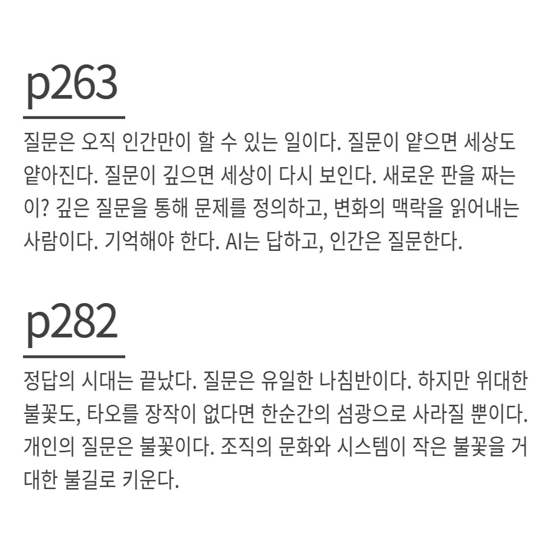 AI 시대에 살아남는 사람은 기술을 가장 빨리 배우는 사람이 아니라, 가장 오래 질문하는 사람이라는 것을.