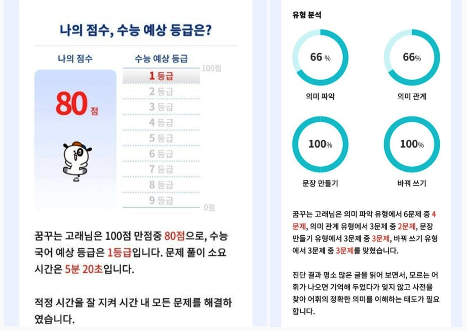'학습 전 - 학습 중 - 학습 완료 후' 총3회로 수능 국어 예상 등급과 학습 처방을 통해