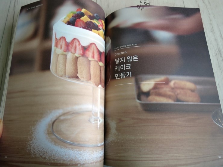 달지 않아 맛있는 케이크 레시피를 소개하는 책.