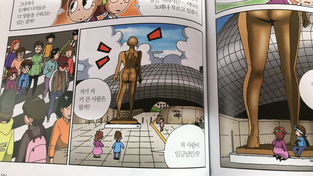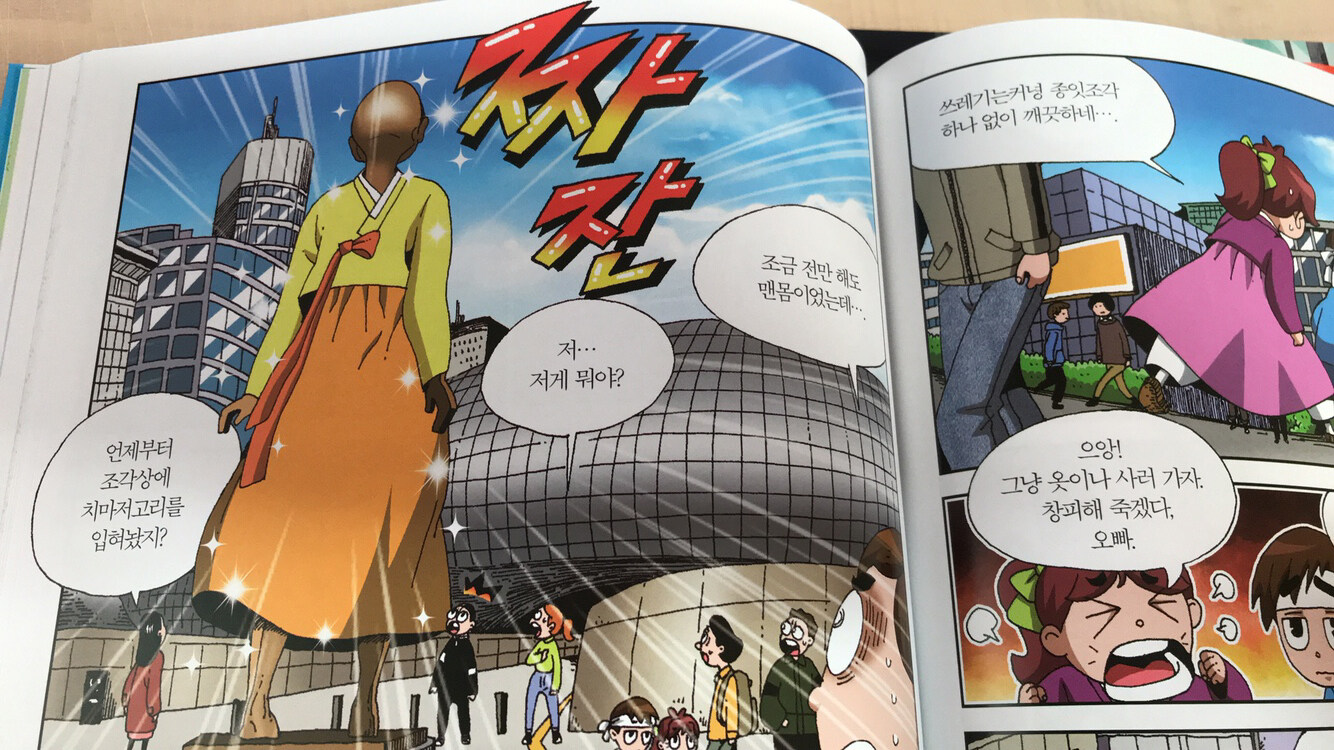 개인적으로 1권에서 제일 재미있었던 부분은 조선시대에서 온 우치와 친구들이 헐벗은(?) 조형물에 옷을 입혀 주는 장면. ^^