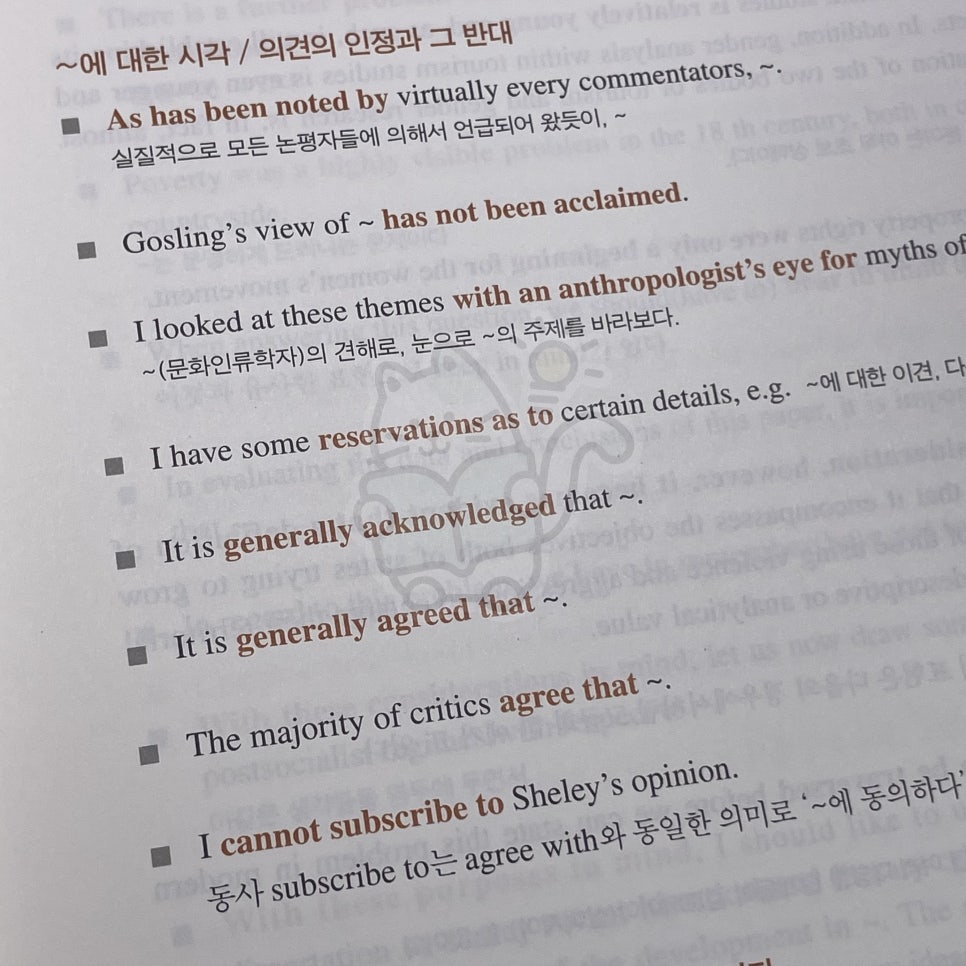 인상적인 부분은 영어 논문에 어울리는 '문체와 표현 방법'이 마치 사전처럼 예문으로 제시되어 있어서 필요한 부분을 발췌해서 쓰기 용이하다는 점이에요.