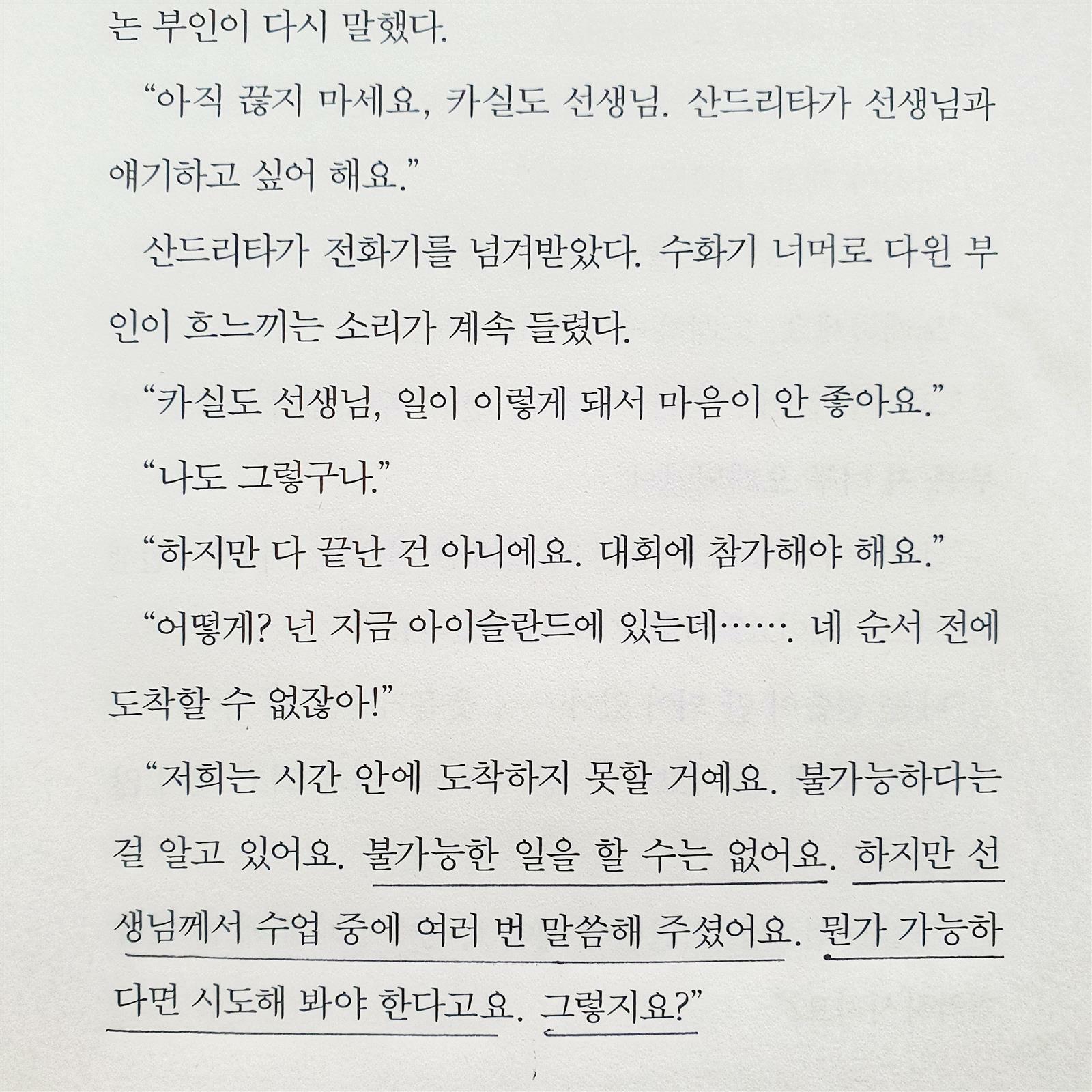 🔹️저희는 시간 안에 도착하지 못할 거예요. 불가능하다는 걸 알고 있어요. 불가능한 일을 할 수는 없어요. 하지만 선생님께서 수업 중에 여러 번 말씀해 주셨어요. 뭔가 가능하다면 시도해 봐야 한다고요. 그렇죠?