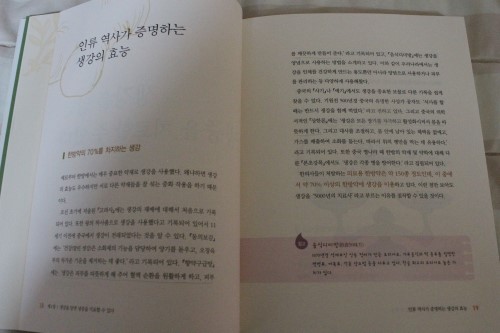 그 생강의 효능에 대해 일목요연하게 정리를 참 잘해 놓았다는 생각이 들만큼 책 내용이