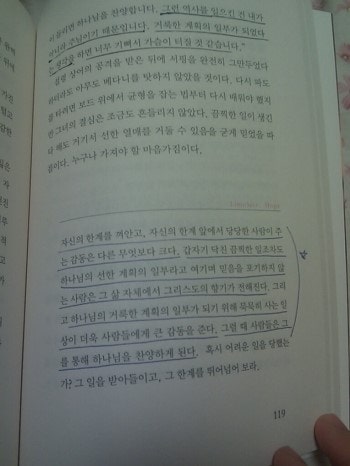 정말 놀라웠다. 위에 적은 구절 외에도 닉의 생각을 따라가다보면 그가 어쩌면 그렇게 힘있고 밝게 살 수 있는지 참 놀랍다. 그리고 그 모든 원동력이 하나님임을 고백하는 닉을 보며 다시 한 번 하나님을 찬양하게 된다. 닉은 크신 하나님, 선하시며 놀라운 사랑을 우리에게 주시는 하나님께 삶의 모든 초점이 맞춰져있다. 우리가 안경을 통해 세상을 보거나, 현미경 또는 망원경을 볼 때 초점이 정확히 맞춰져있느냐에 따라 보이는 것이 달라지는 것처럼 인생을 살아가면서 어디에 초점을 두고 사느냐에 따라 보이는 것과 느끼고 생각하는 것이 달라질 것이다. 우리는 닉을 보며 팔과 다리가 없는 사람이라고 생각하지만 그렇지 않다. 닉은 인생에서 가장 중요한 것을 가진 사람, 그래서 모든 것을 가진 사람이다. 이 책을 덮으면서 오늘 나의 삶의 자세를 되돌아본다. 닉은 팔다리가 없는데 나는 있어서 감사하다라는 식의 단순하고도 다소 무례한 감사는 참 낮은 수준임을 깨닫는다. '과연 나는 하나님과 깊이 사랑하고 있는가? 하나님께서 끊임없이 속삭이시는 사랑의 밀어를 수시로 귀 기울여 듣고 있는가? 그리하여, 삶의 굽이굽이마다 하나님이 가득하여 누구와 비교하고 말고 할 생각조차 하지 않는 완전한 평화가 있는가?' 그리도 또 깨닫는다. 이 책을 읽으면서 '나는 왜 이리 제대로 못 살지?'라는 자책은 하나님도, 닉도 바라는 것이 아니라는 것을 말이다. 닉은 그래도 우리의 삶이 여전히 아름답다고 말한다. 왜냐하면 그 원인이 나에게 있는 것이 아니라 나를 사랑하시는 신실한 하나님께 있기 때문이다. 그렇기에 부족한 듯해도 나의 삶 역시 여전히 아름답다.