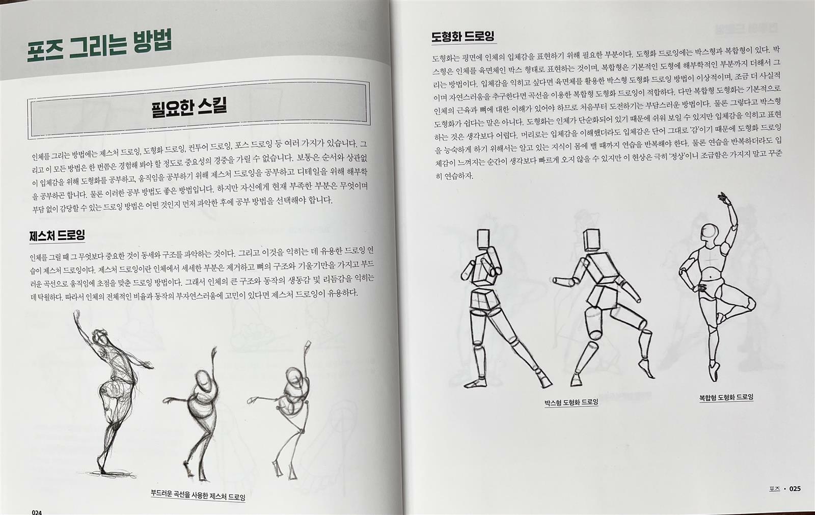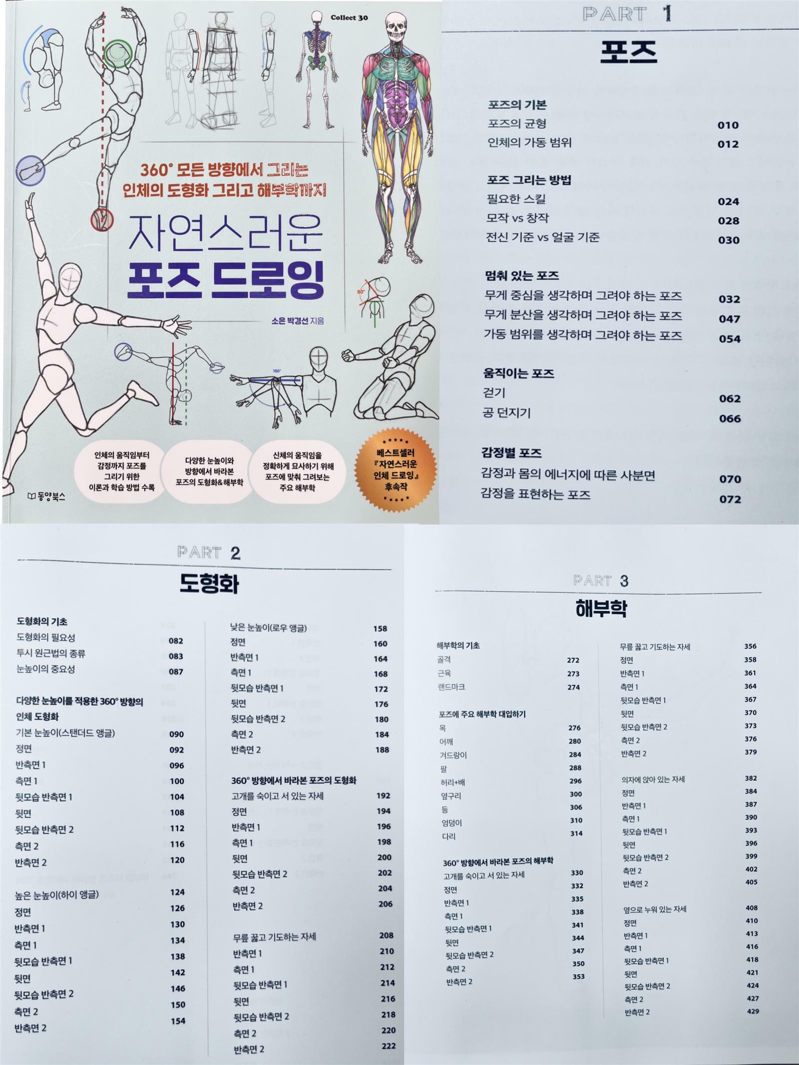 자연스러운 포즈 드로잉 책은 크게 3가지 파트로 이루어져 있습니다.