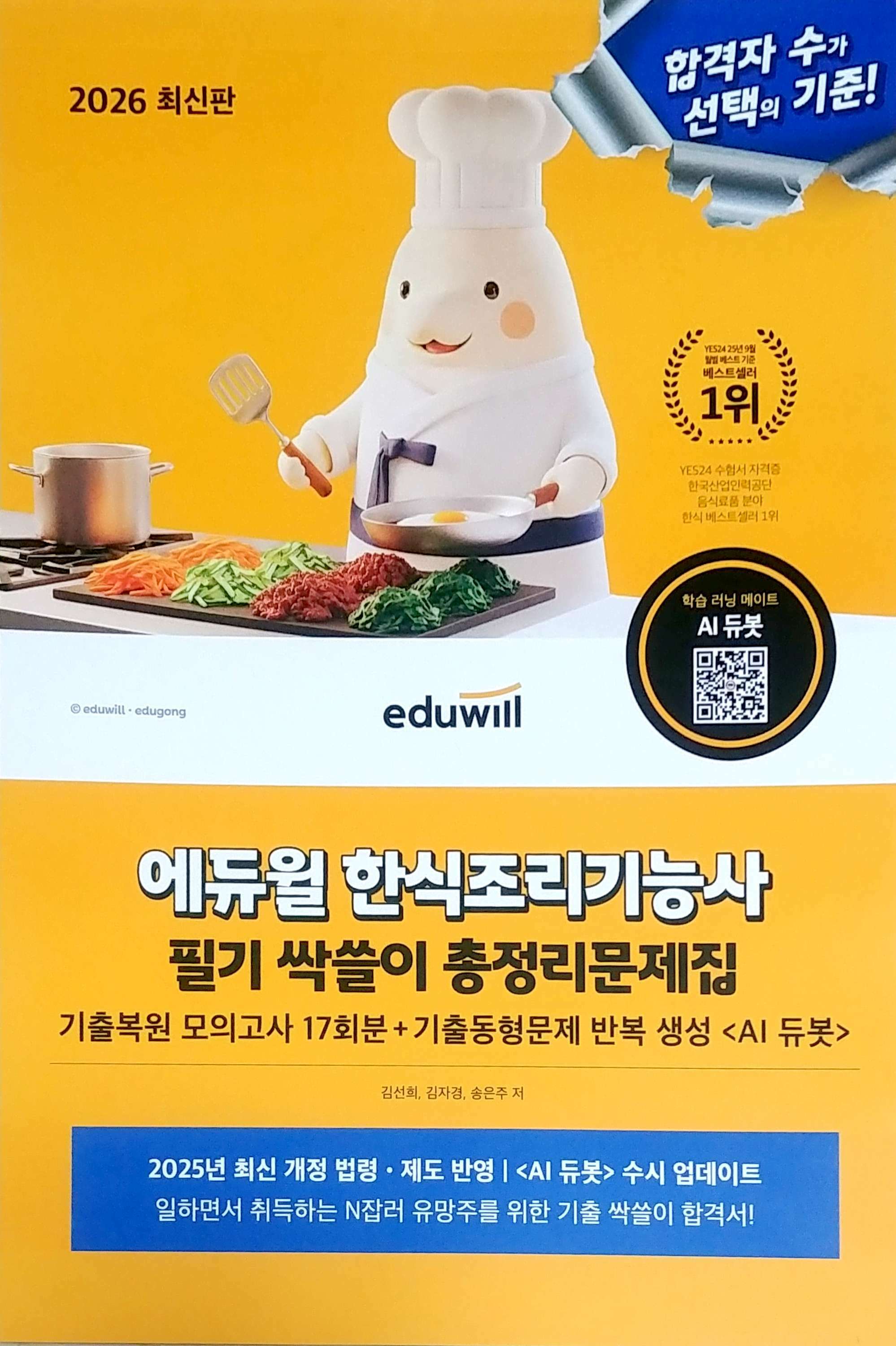 [2026 에듀윌 한식조리기능사 필기 싹쓸이 총정리문제집]은 CBT 교재풀이를 7회분 제공한다. (QR코드가 있어서 바로 연결해 학습이 가능했다.) 웬만한 수험서는 이제 무료강의가 대세인 만큼 에듀윌도 이런 흐름을 따라가는 것 같다. CBT 방식은 컴퓨터를 이용하여 시험을 시행하는 방식이다. 기존의 PBT 방식(종이 문제지를 보고 OMR 답안지에 답을 표시) 보다 답안 수정이 쉽고, 바로 합격 여부를 확인할 수 있다는 점이 특징이다.