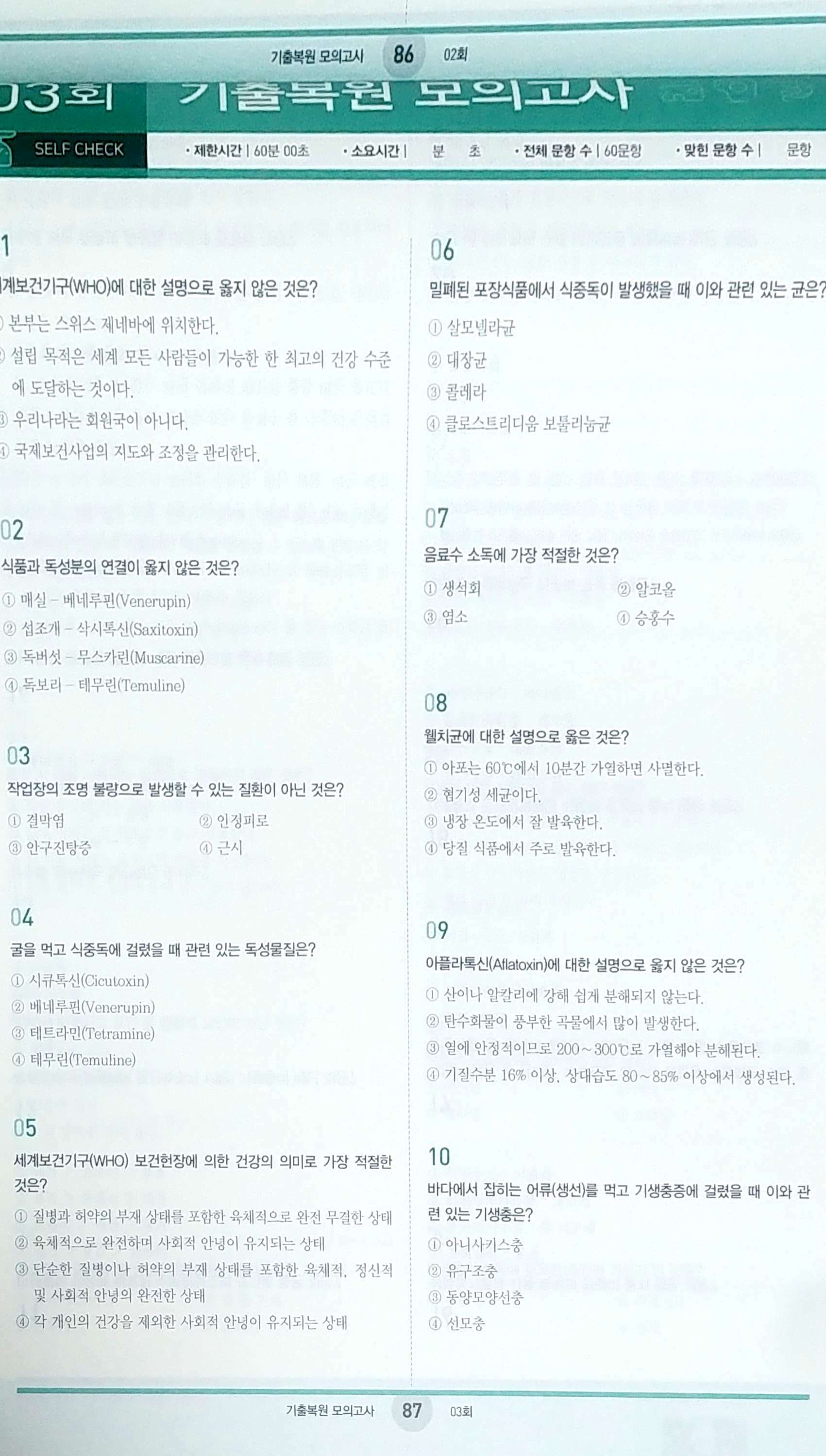 필수문제 300선에서는. 방금 풀은 문제의 해설을 바로 문제하단에 넣었다. 바로 정답을 예상할 수 있다. 실제 시험과 동일한 60문항 구성의 기출 복원 모의고사도 수록되어 있다. 각 회차마다 <SELF CHECK> 란이 있어서 제한 시간 60분 안에 풀면서 걸린 시간과 맞힌 개수를 직접 적어볼 수 있다.