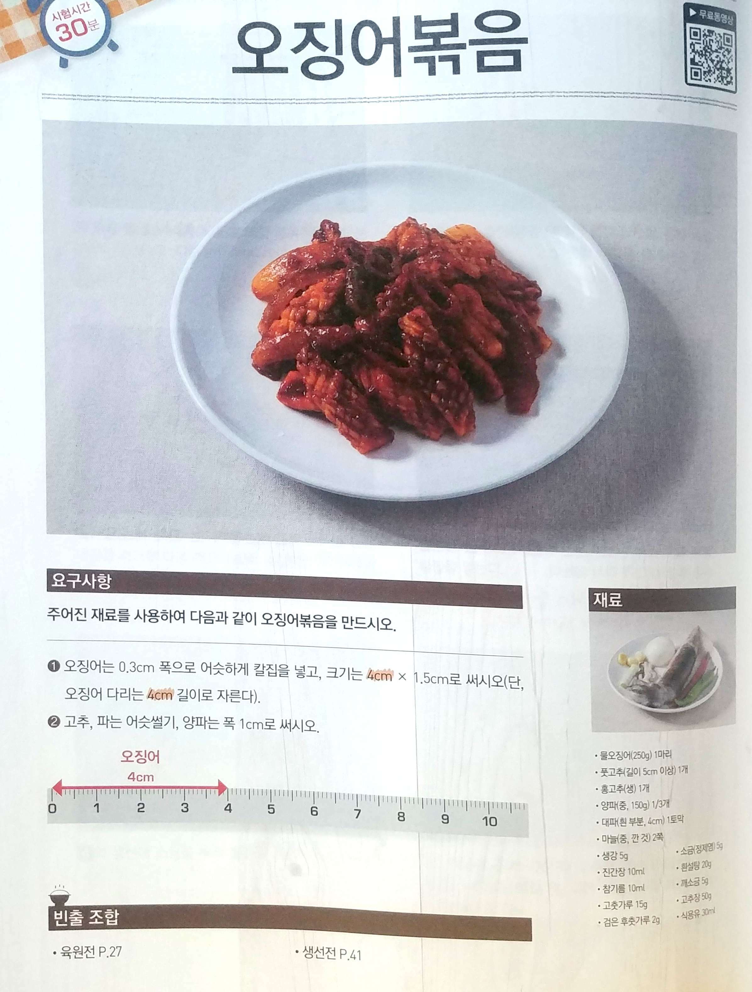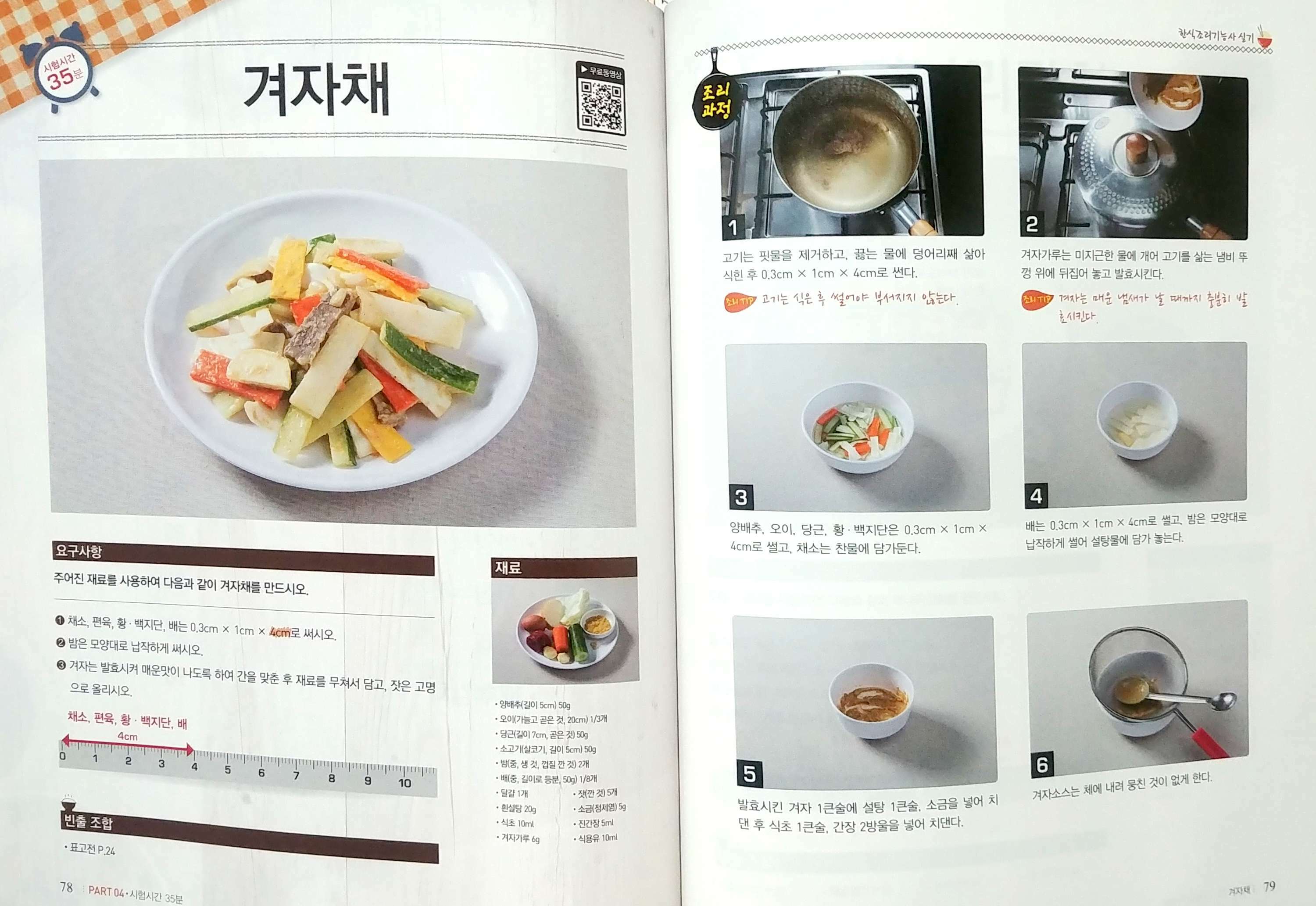 실기 동영상도 QR코드로 바로 연결되는데, 이 부분도 생각보다 도움이 많이 됐다. 칼질 방향이나 불 조절 타이밍처럼 글로만 봐서는 감이 잘 안 잡히는 부분들이 영상으로 보면 훨씬 이해가 빠르다. 전 과정이 담겨 있어서 한 번 보고 끝내는 게 아니라 반복해서 보기에 좋다.