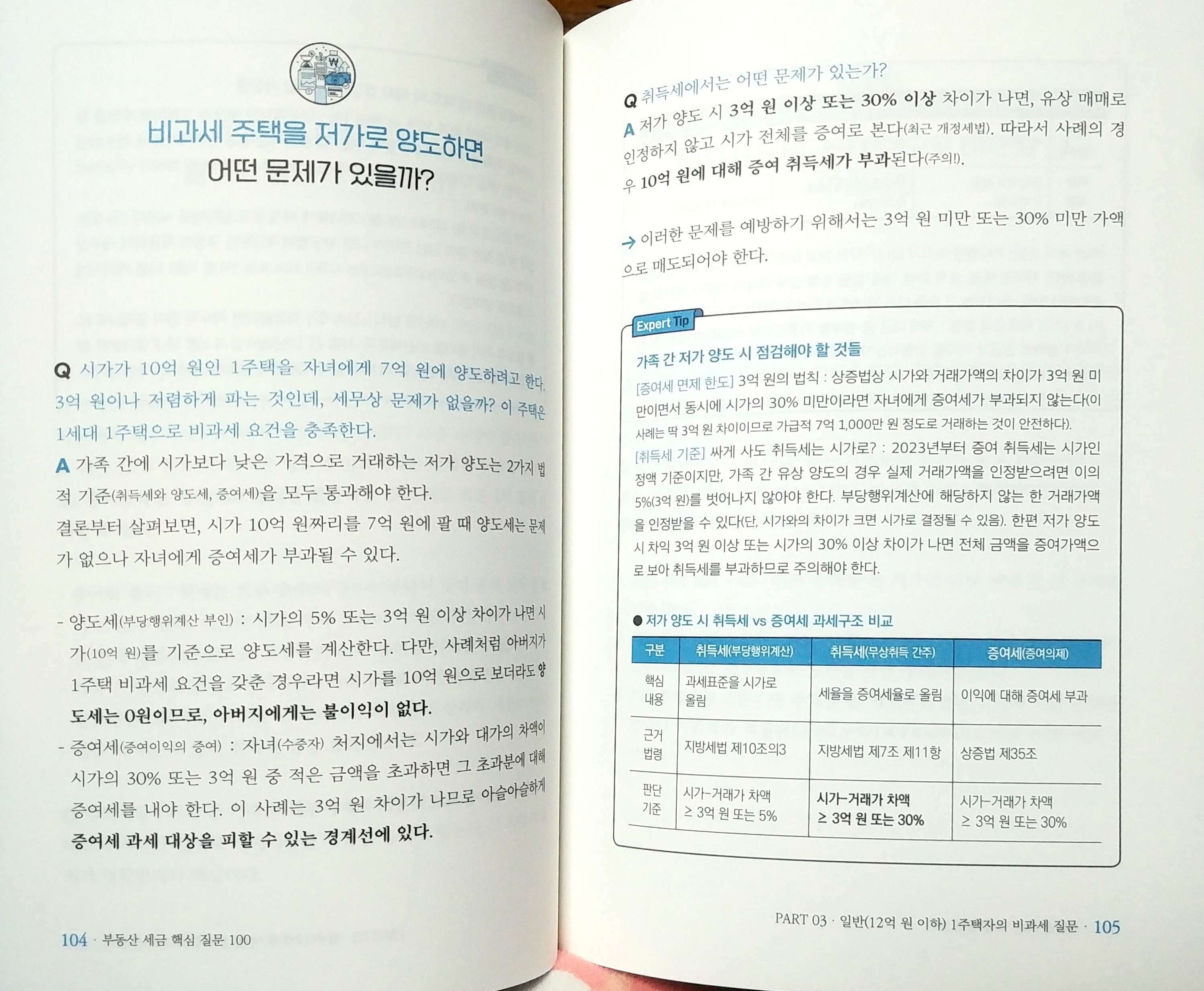 세법 조문을 길게 늘어놓기보다는 상황을 먼저 던진다. 예를 들면 시가 10억짜리 집을 자녀에게 7억에 팔면 문제 없을까 같은 질문이다. 여기서 끝나는 게 아니라, 왜 양도세는 괜찮고 증여세는 문제가 될 수 있는지까지 같이 설명해준다. 읽다 보면 중간중간 “아 이래서 그랬구나” 싶은 부분이 꽤 나온다.