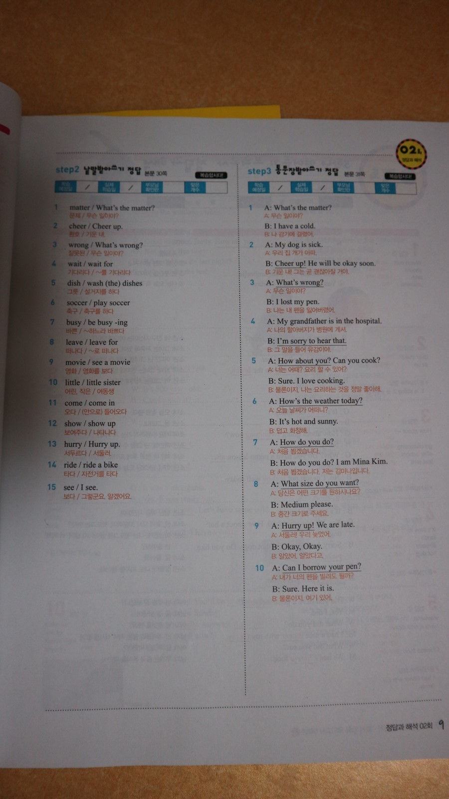 3. 어구 받아쓰기 정답이 '정답과 해석'이라는 해답지쪽에 함께 위치한게 아니라,