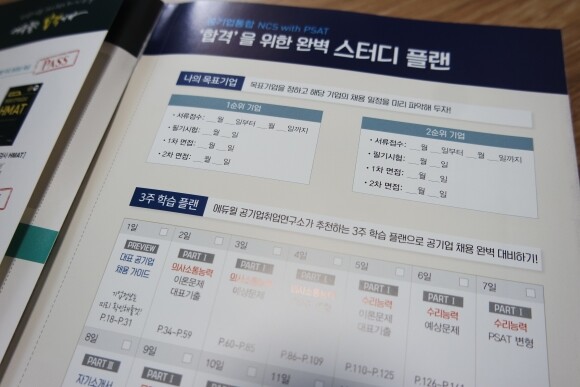 합격을 위한 완벽 스터디플랜에는 나의 목표기업 1순위, 2순위를 적고 각 서류접수/필기/면접일을 적을 수 있습니다.