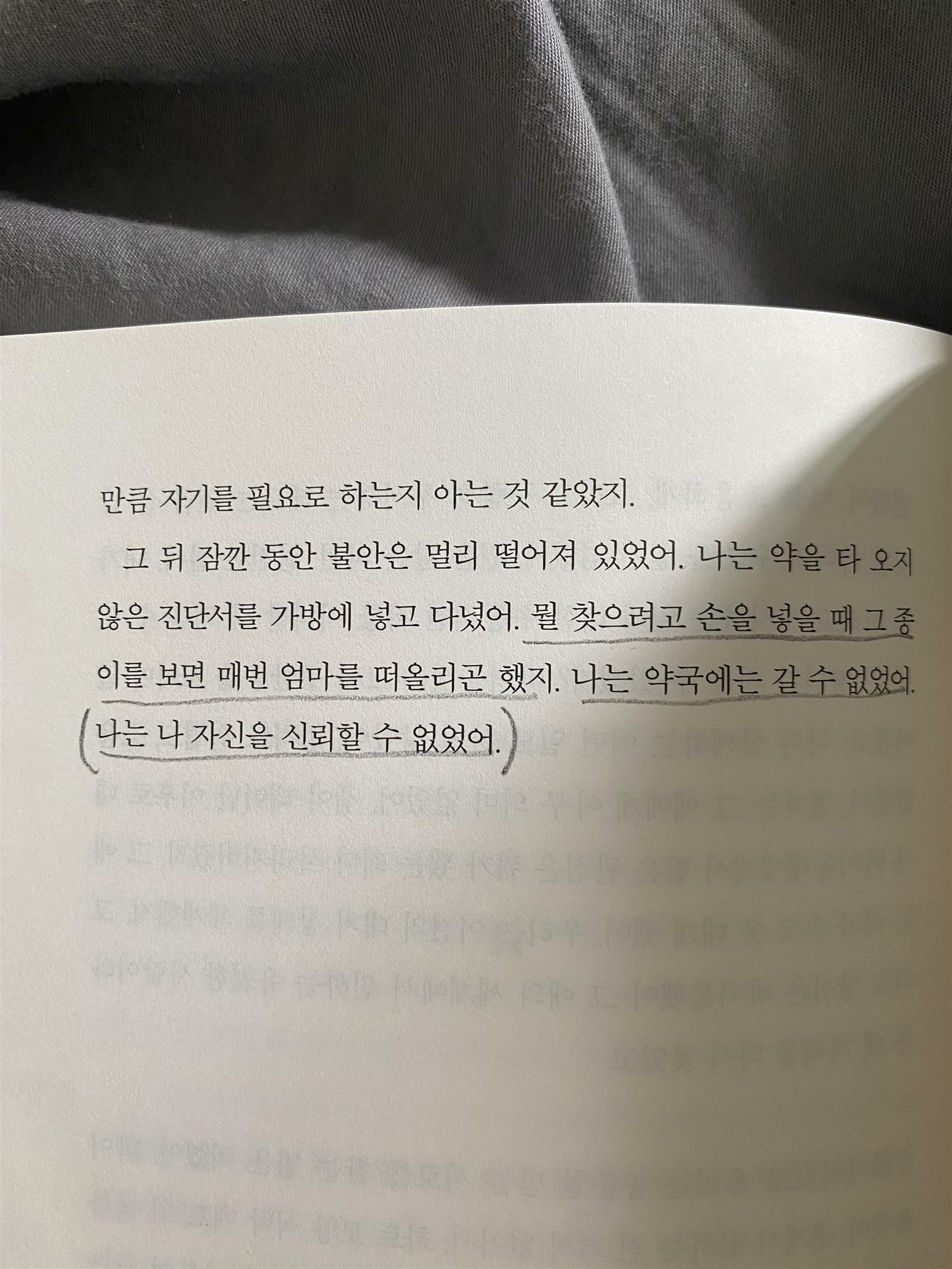 걸어가는 여자의 뒷모습은 풍만하고 여성적으로 보였어. 넓은 엉덩이, 그나마 쪽잠이라도 잤는지 헝클어진 어깨 길이의머리카락. 내게 그 여자는 너무도 분명하게 아이의 엄마로 느껴졌어. 그 여자의 모습 때문이었을까, 아니면 동작 때문에? 여자가 나보다 훨씬 더 신경 쓸 게 많아 보였기 때문에? 언제 내게도 이런 일이 일어날까? 교차로를 건너가는 변화는? 나는 어떻게 바뀌게 될까? p46