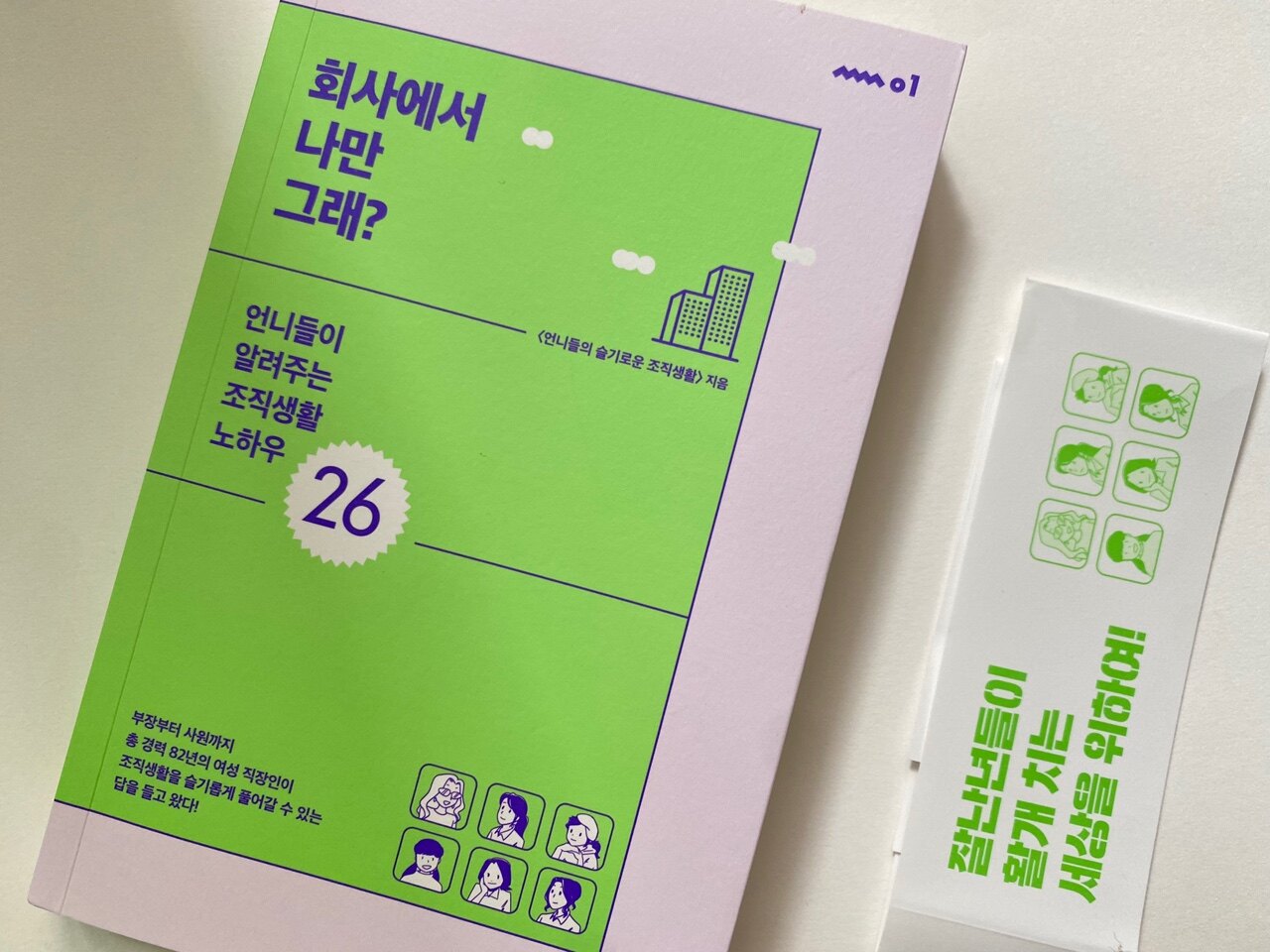 책 <회사에서 나만 그래?>는 부장에서 사원까지, 직장생활 20년차부터 7년차까지, 총 경력 82년의 여성직장인이 회사생활을 하면서 한 번쯤은 고민해봤을, 혹은 고민의 고민이 거듭되면서도 답을 찾을 수도 없는 그런 고민들 26가지를 경험을 바탕에 두고 진솔하게 이야기해준다.