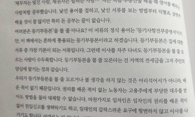 당시 나는 등기부등본이 정확히 무엇을 말해주는 서류인지, 납세증명서는 왜 확인해야 하는지, 전입신고만 하면 되는 줄 알았지 확정일자는 왜 필요한지조차 제대로 알지 못했다. 지금 생각하면 믿기 힘들 정도지만, 그때의 나는 “중개인이 괜찮다고 하니 괜찮겠지”라는 막연한 신뢰 하나로 계약서에 도장을 찍곤 했다. 법과 권리의 문제를 이해하지 못한 채 거래를 했다는 사실이 가장 아찔한 지점이다.