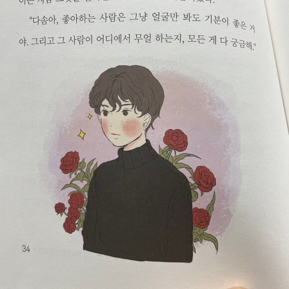 "다솜아, 좋아하는 사람은 그냥 얼굴만 봐도 기분이 좋은 거야. 그리고 그 사람이 어디에서 무얼 하는지, 모든 게 다 궁금해."