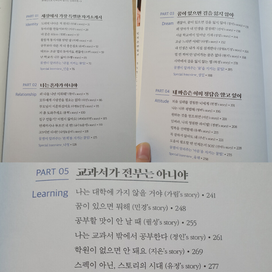 이책은 무엇보다 또래 친구들의 진솔한 이야기가 있어서, 어떤 부분에서는 어른들의 이야기보다 더 도움이 될 것 같다.