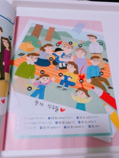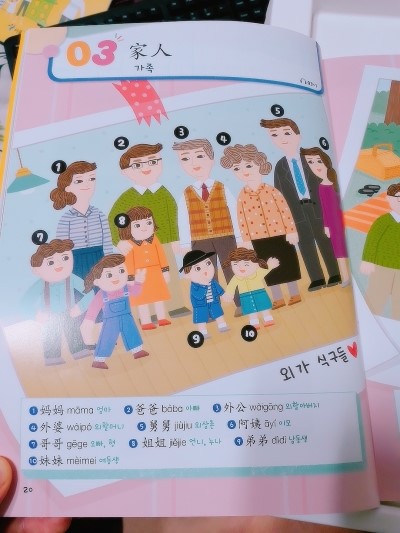 신나는 어린이 중국어 그림단어장 1단원 에서는 실생활이 주제로 집안과 가족등 실생활에서 사용가능한 단어 위주로 나오고있어요.