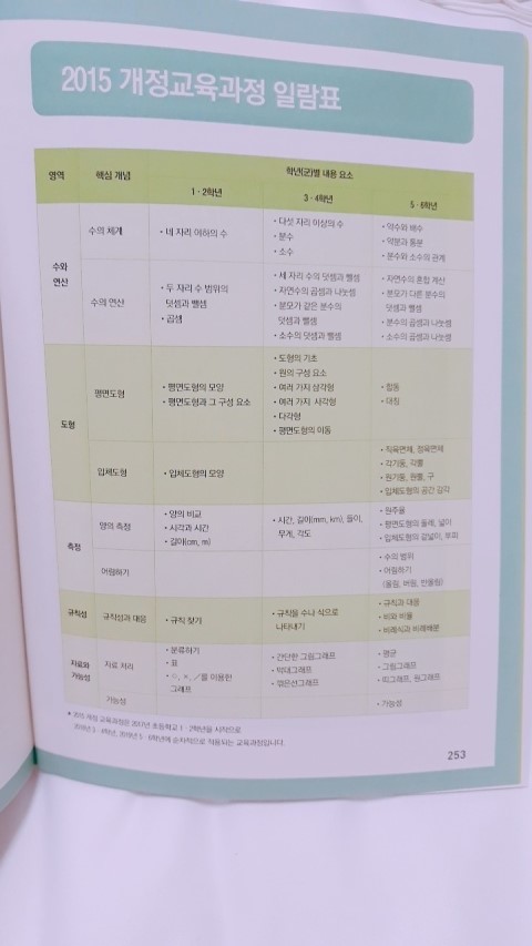 뒷부분에는 개정교육과정 일람표와 각학년별 중요단원이 어떻게 연결되어있는지