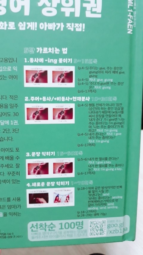 짧지만 반복된문장으로 ~ing가 붙으면 ~하는중이라는 걸 자연스럽게 습득하게되네요.
