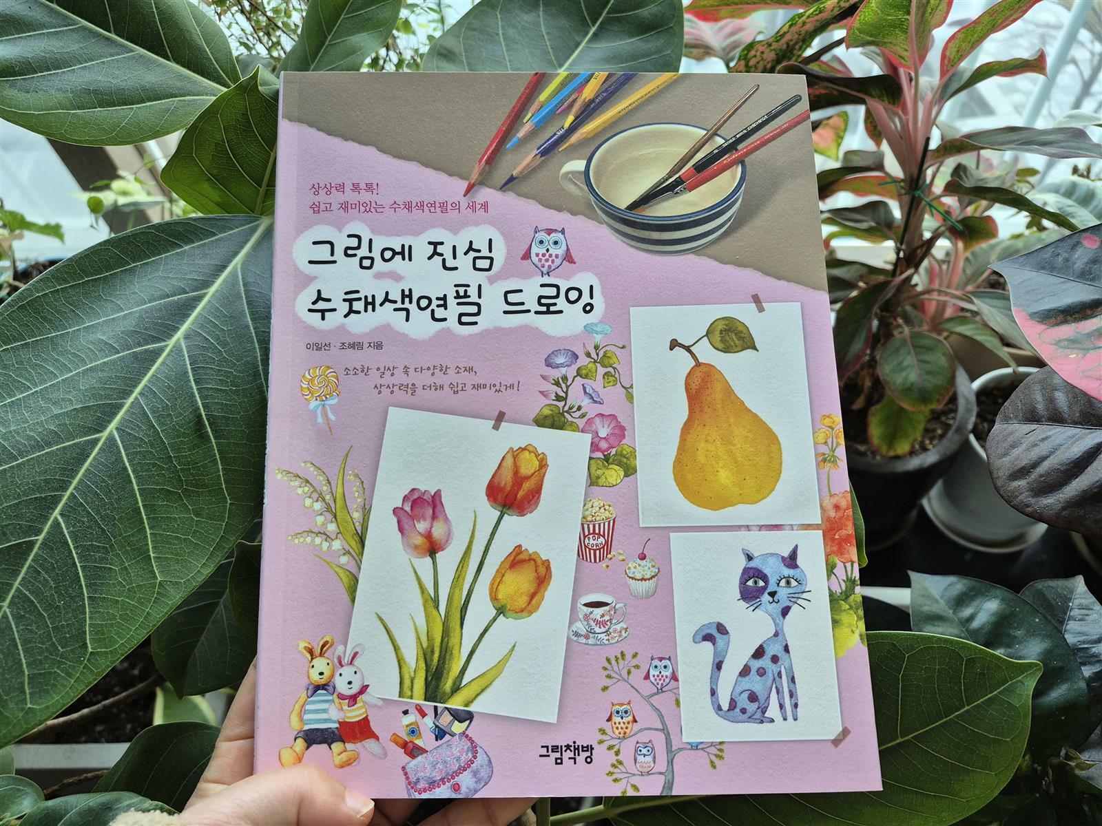 그림책방에서 출판된 《그림에 진심 수채색연필 드로잉_상상력 톡톡! 쉽고 재미있는 수채색연필의 세계》입니다.