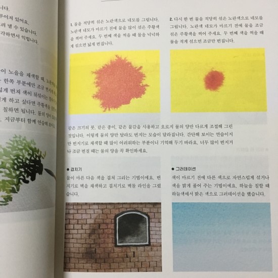 이 책에선 수채화 초보자가 중간에 어떤 고민도 겪지 않게끔 정말 자세하게 설명해주고 있다.