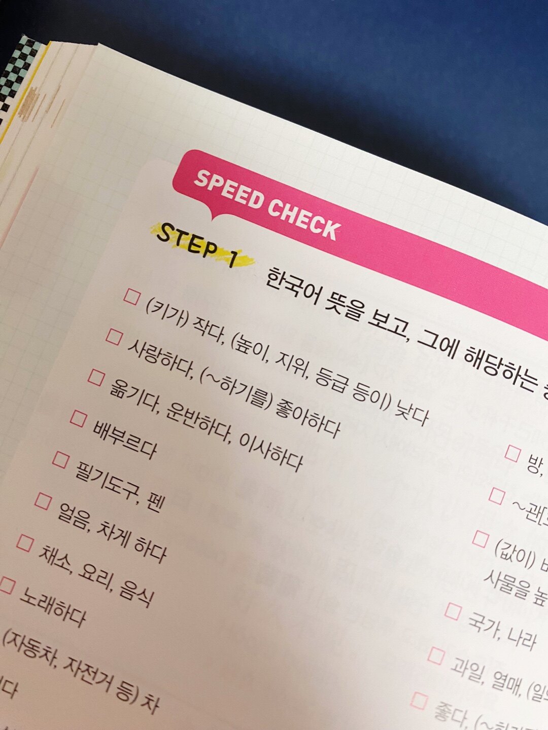 <HSK 1~4급 VOCA 礼物> 도 다른 책과 마찬가지로 '연습문제' 가 있는데 speed chekup 이라는 단원에서 자기가 얼마나 알고 있는지 확인해볼 수 있어요.