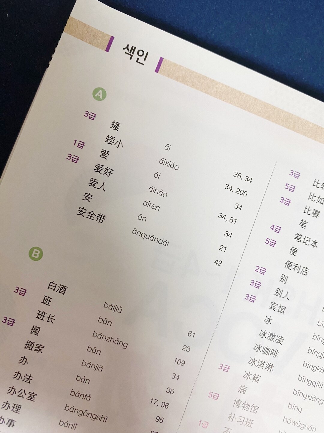 병음순서에 따른 단어 뿐 아니라 각 글자가 어떤 급수에 해당하는지도 알 수 있어서 유용해요. ❤
