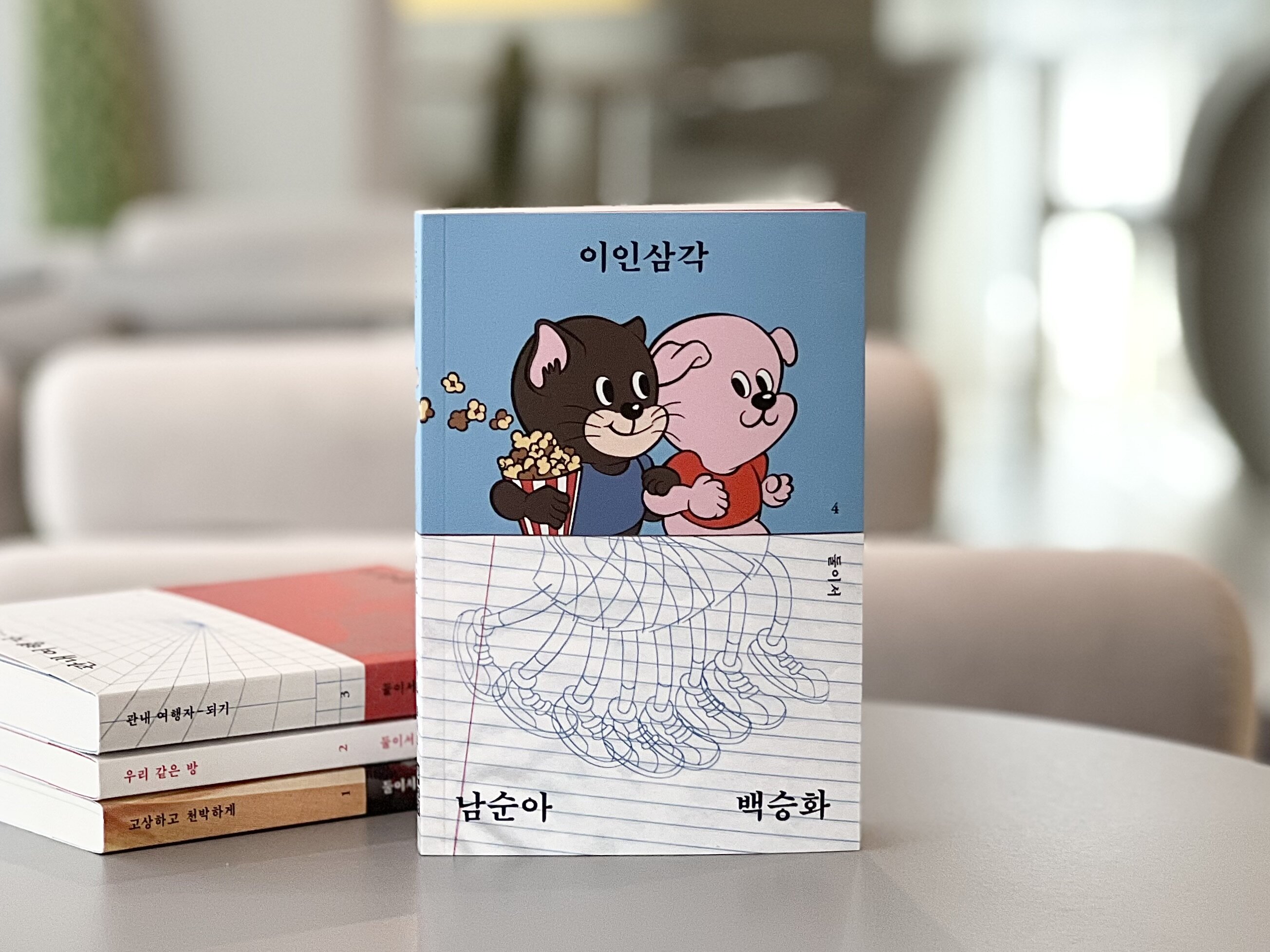 두 사람이 함께 쓰는 열린책들의 에세이 시리즈 '둘이서'의 네 번째 책이다. 싱어송라이터 김사월과 시인 이훤의 <고상하고 천박하게>, 시인 서윤후와 한문학자 최다정의 <우리 같은 방>, 시인 백가경과 문학평론가 황유지의 <관내 여행자-되기>에 이어 네 번째 책은 영화감독 남순아와 영화감독이자 소설가인 백승화의 <이인삼각>이다. 이 시리즈는 독특하게도 네 권 모두 표지의 통일성이 없다. 대신 각각의 책들이 저자에 따라서 완전히 색깔이 달라진다. 하나의 책으로 묶인 두 저자의 케미도 흥미로운데, 이름을 보지 않고 읽으면 누구의 글인지 헷갈릴 만큼 결이 비슷해 각각의 글마다 페이지 하단에 저자 이름이 써 있다. 여러 모로 독특한 시리즈라 매번 챙겨보고 있다.