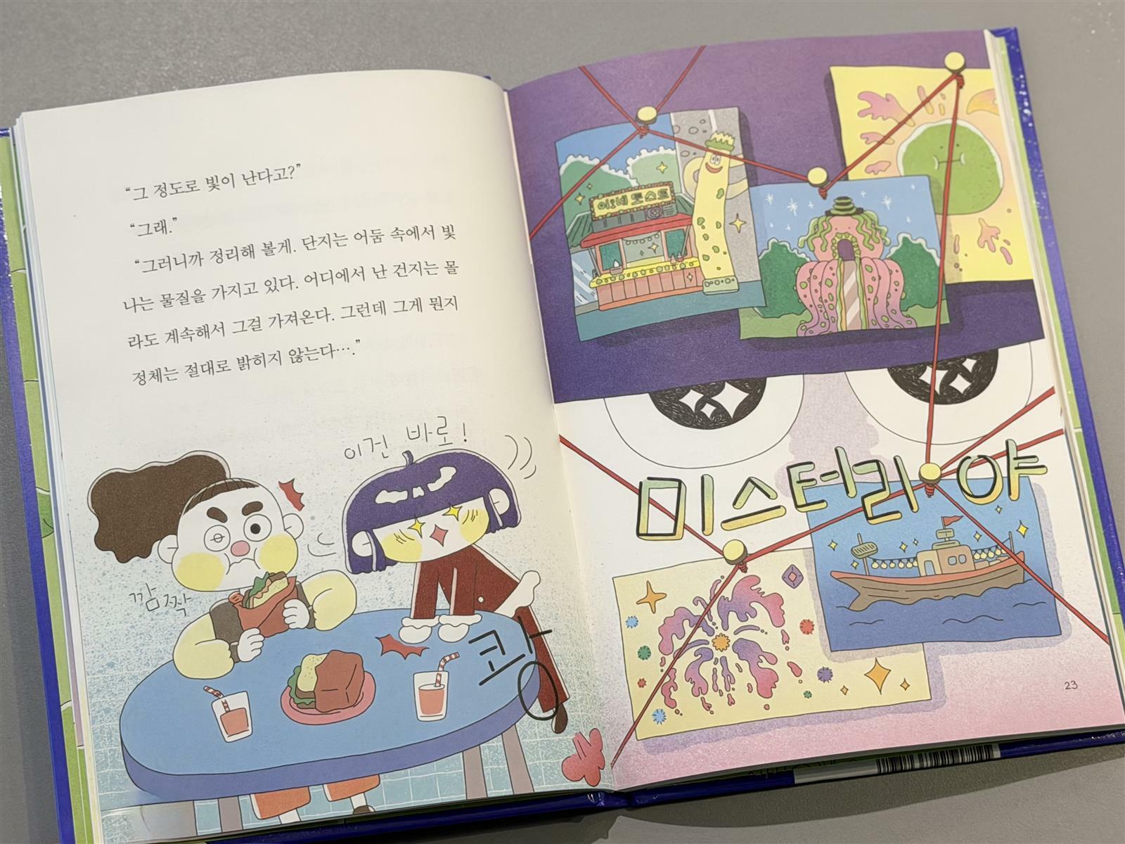 세 번째 이야기에서는 야광 코딱지가 또 어떤 활약을 할지 지켜보는 것도 재미있을 것이고, 우리의 꼬마 영웅 단지가 위기를 겪으며 조금씩 성장해 나가는 모습을 응원하며 읽는 것도 좋다. 말랑말랑하면서 밝게 빛나고, 고무찰흙처럼 반죽할 수 있고, 어두워지면 빛이 나는 형광물질로 위기를 겪는 이웃들을 도와주고, 어려움에 처한 친구들을 도와준다는 설정부터 신선했던 <야광 코딱지> 시리즈는 매번 새로운 발명품으로 재미를 더해주었다. 잃어버린 강아지를 찾아주고, 조명이 고장난 토스트 가게의 불을 대신해주고, 한여름밤 놀이터를 신나는 놀이공원으로 변신시켜주고, 오징어잡이 배를 밝혀주기도 했다.