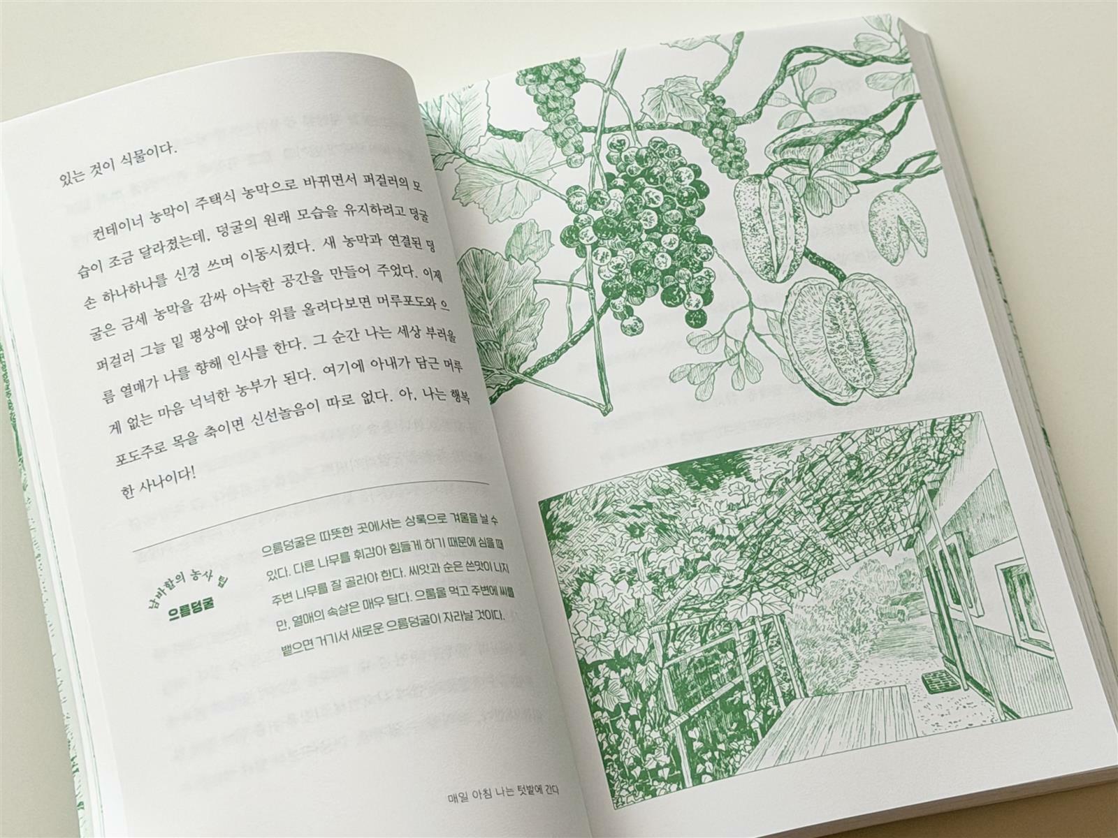 텃밭의 사계절 풍경을 고스란히 느낄 수 있는 책이라 정말 재미있게 읽었다. 아름다운 세밀화와 사진이 풍부하게 담겨 있어 더 생생하게 텃밭과 작품들을 만날 수 있어 더 좋았다. 텃밭 농부로서의 삶이 만만하지는 않겠지만, 언젠가 기회가 된다면 이렇게 텃밭을 가꾸며 살아보고 싶다. 나만의 텃밭을 꿈꿔 본 적이 있거나, 식물을 사랑하는 이들에게 추천해주고 싶은 책이다!