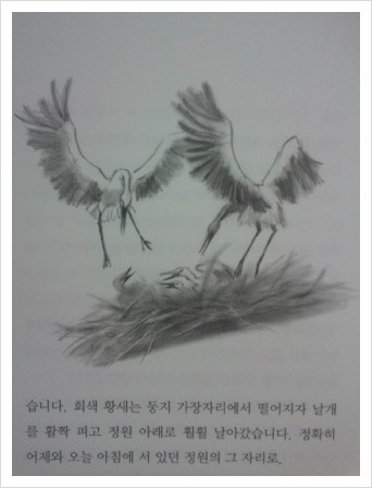 이 책은 독일의 아동문학상을 수상한 작품이라고 하네요. 독일의 작품이라 우리 정서에는 생소한 느낌이 많긴하지만 마이카와 회색황새의 우정과 교감에 관한 내용이 잔잔하게 감동을 줍니다. 우리나라는 아이를 가지면 삼신할머니가 점지해주었다고 하는데 유럽에선 황새가 물어다 주었다고 하잖아요. 그렇게 우리나라와는 다른 정서가 곳곳에 보여집니다.