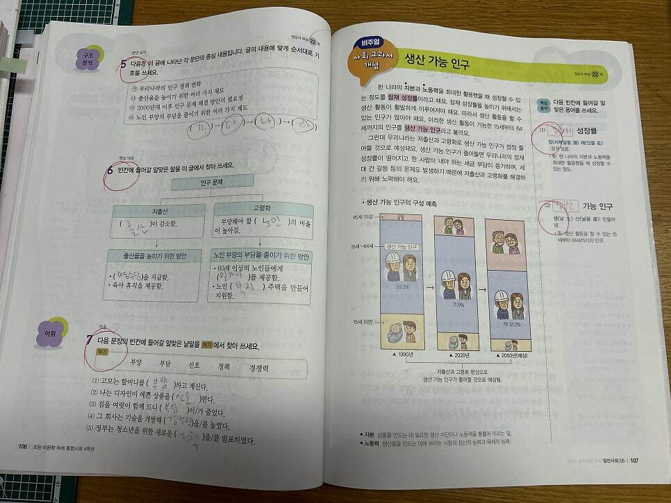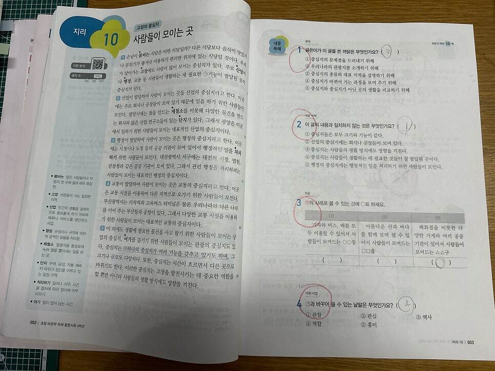 그래서인지 아이가 크게 어렵지 않게 풀었던 것 같습니다. 특히 사회를 좀 어려워 하는 편인데, 지문만 꼼꼼이 읽으면 충분히 풀 수 있는 내용으로 구성되어 있습니다.