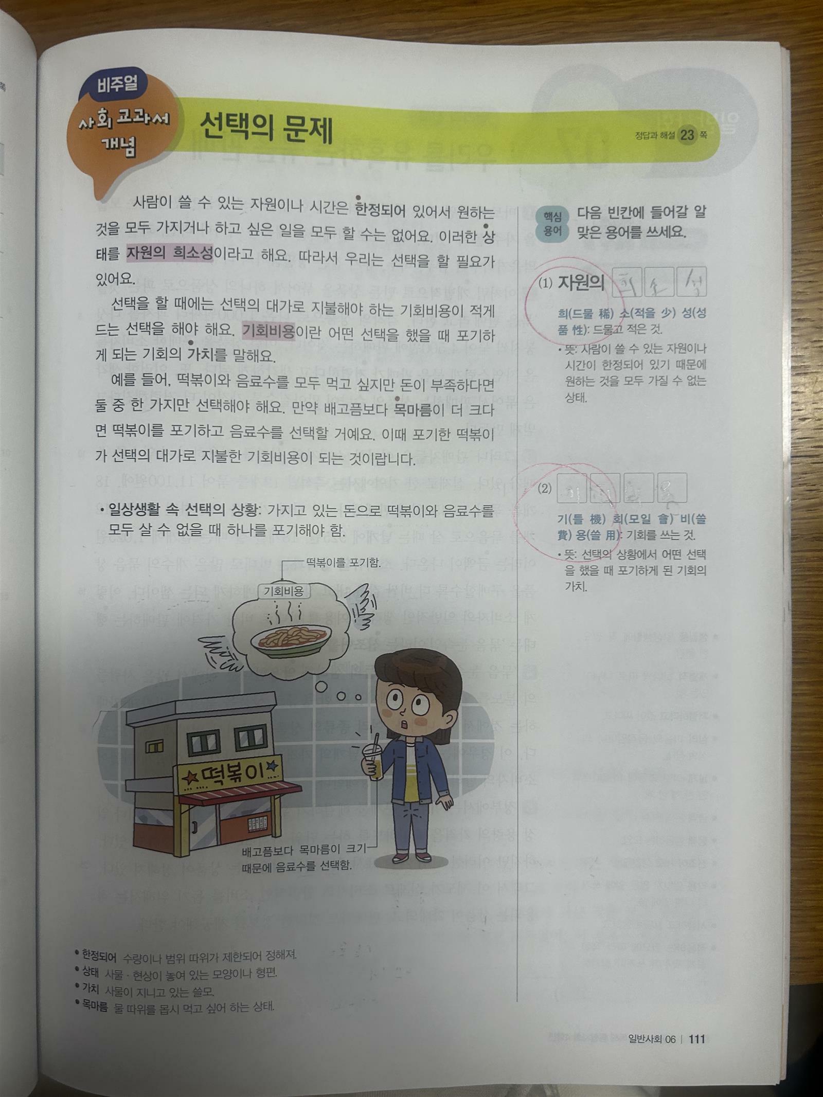 가장 마음에 드는 부분은 중요한 용어는 사회교과서 개념이라는 페이지로 하루치에 한 페이지씩 구성되어 있어 그냥 지나치지 않게 1번 더 반복 하게 되어 있습니다.