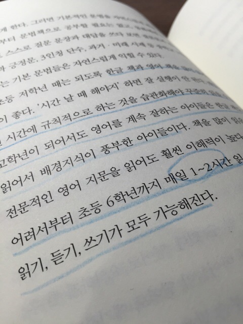 영어공부에 있어서도 어릴때는 한글을 마스터하는것이 가장 중요하다 저자가 말하는 하루 1~2시간정도의 영어공부가 충분하다고 느끼고 있다. 그게 맞는것이다. 모국어가 머리속에 정착이 되어야 외국어도 빨리 이해가 되고 생각을 할수 있기 때문에 이부분에 대해서는 초긍정으로 수긍을 한다.