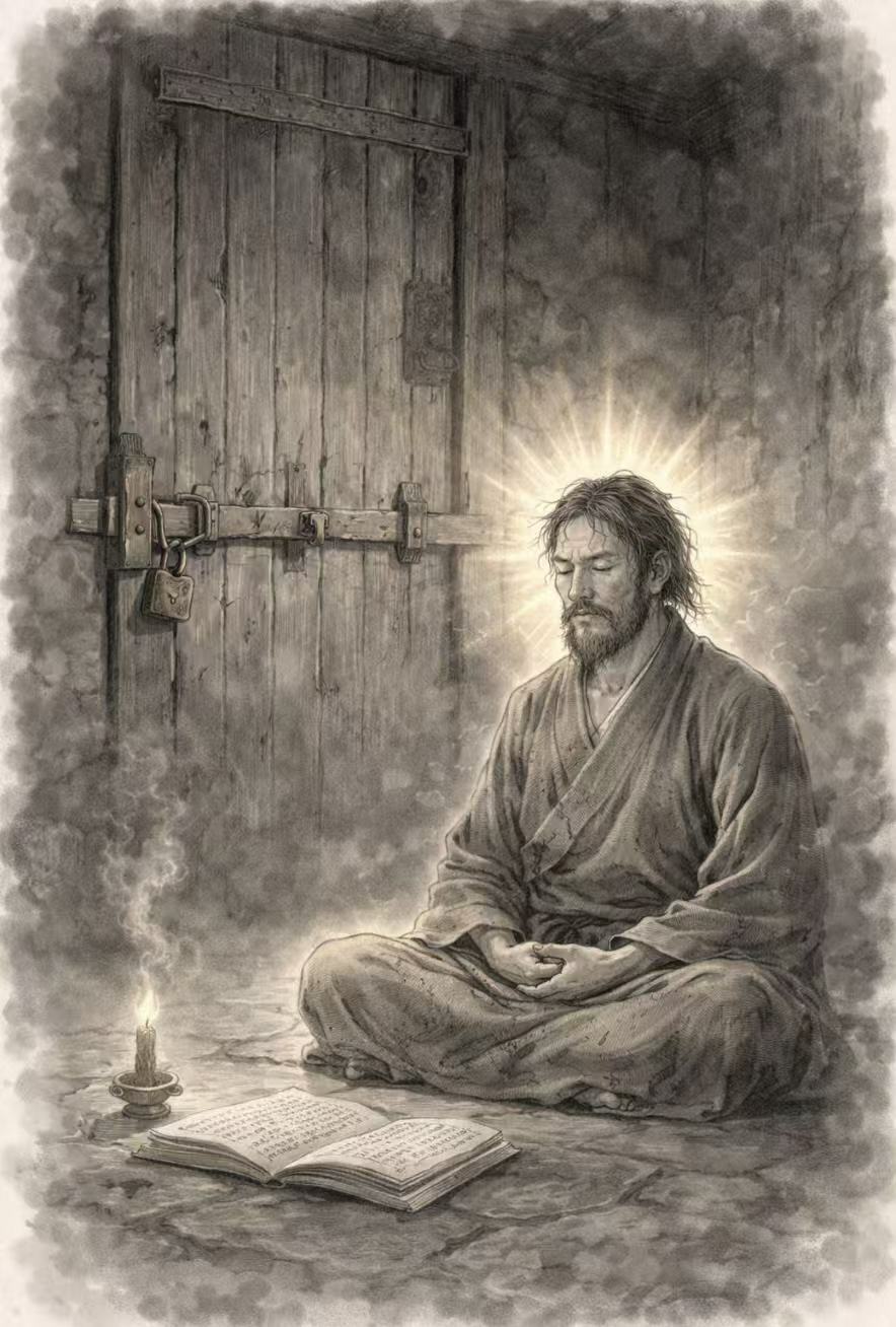 수행자가 사방이 벽으로 막힌 방에 들어가면 밖에서 문을 자물쇠로 걸어 잠가 버린다.