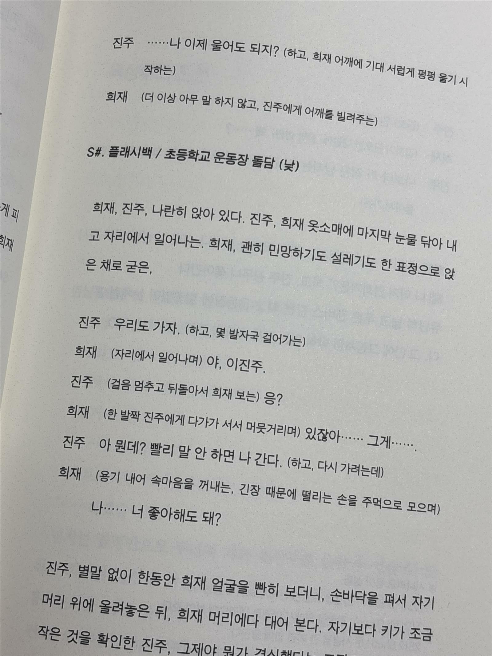 -회상 장면이 시나리오 형식으로 구성되어 몰입도가 높았으며, 시나리오 용어 설명까지 기재되어 있어 이해하기 편했다.