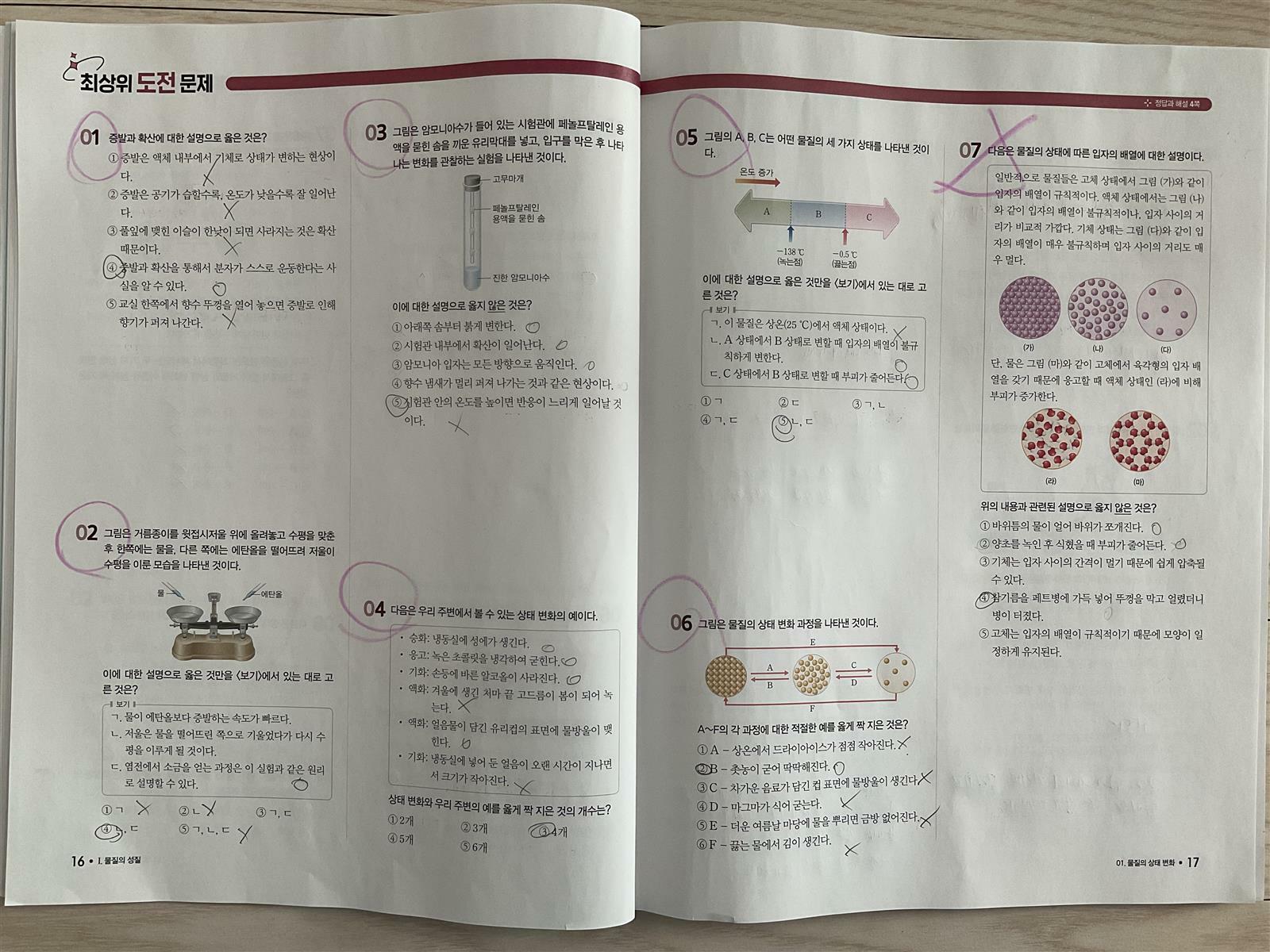 내신을 준비하면서 풀었던, 학기별로 구성된 타사 중등 과학 문제집과 비교해 봤을 때