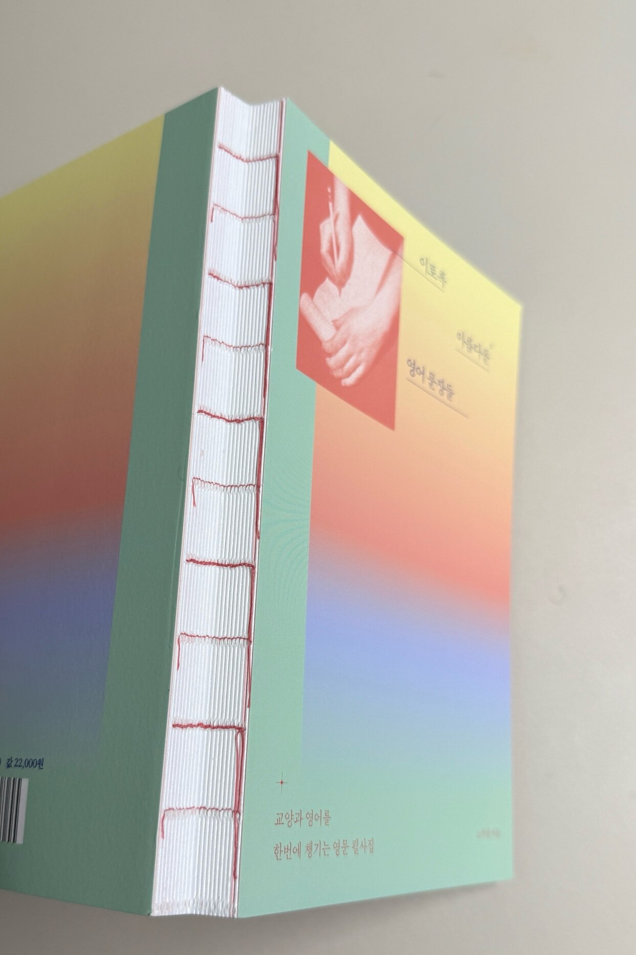 책 표지, 뒷면도 하나같이 따스하고 띠지 마 저도 한 세트일 만큼 여러 색상들이 잘 어우러지며 제목처럼 문장과 만나기 전에 바라보는 책만으로도 아름다움을 자아냈다. 그리고 지난번에 만난 필사 책으로 알게 되어 걱정보다 필사를 하는 사람들에게 만족스러운 제본 방식인 사철 누드 제본으로 제작되어 있다는 것! ㅎㅎㅎ 이래서 아는 게 힘인가 보다