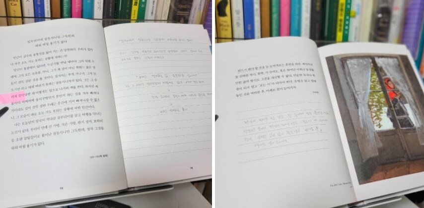『 모네의 숲에서 월든을 읽고 필사하다』는 복잡하게 더 많은 내용을 읽어나가기보다 하루 한 장의 시간만큼만 소로가 전하는 내용의 글을 통해 내 삶을 돌아보고 모네의 그림을 통해 위안 받으며 잠시 오늘을 돌아보고 독자에게 숨 돌릴 시간을 주는 책이다. 읽고, 감상하고, 필사해 봄으로써 돌아보는 내 삶이 더욱 풍요로워지길 기대해 본다.