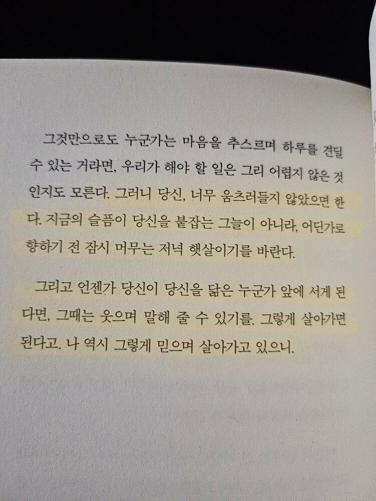 이 책을 읽고 난 후 떠오르는 단어들은 "용기. 희망. 따뜻함. 공감. 그리고 위로"