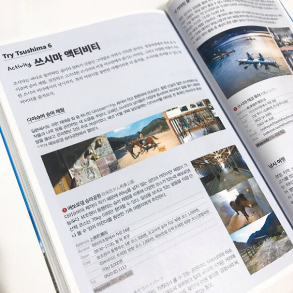 쓰시마 여행에서 체험해 볼 수 있는 액티비티까지 소개하는 구성으로 이루어져 있다.
