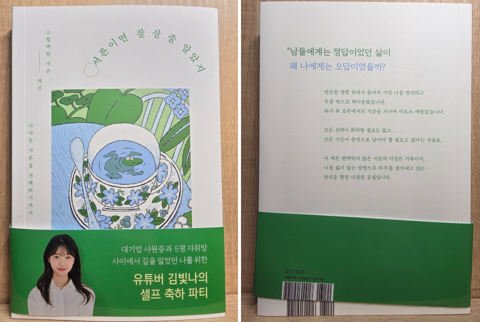 읽는 동안 자연스레 나의 서른을 떠올리게 된다. 그때의 나는 꽤 괜찮은 어른이 되어 있을 줄 알았다. 그러나 실제의 삶은 상상과 달랐다. 열심히 살았지만 불안했고, 안정적이었지만 어딘가 허전했다. 남들에게는 정답일지 몰라도 나에게는 오답일 수 있다는 인식이다. 우리는 정답이 하나라고 배워왔다. 그러나 삶에는 수많은 해답이 존재한다. 나를 잃지 않는 쪽을 선택하겠다는 그 다짐 하나로도, 이미 충분히 괜찮은 오늘이라는 생각이 든다.