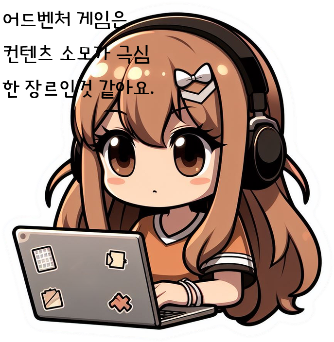 어드벤처 게임은 커맨드 입력 방식, 포인트 앤 클릭 방식, 사운드/비주얼 노벨, 미연시등이 포함되어요. 이런 게임은 아무래도 2번 플레이하기는 어려워요.