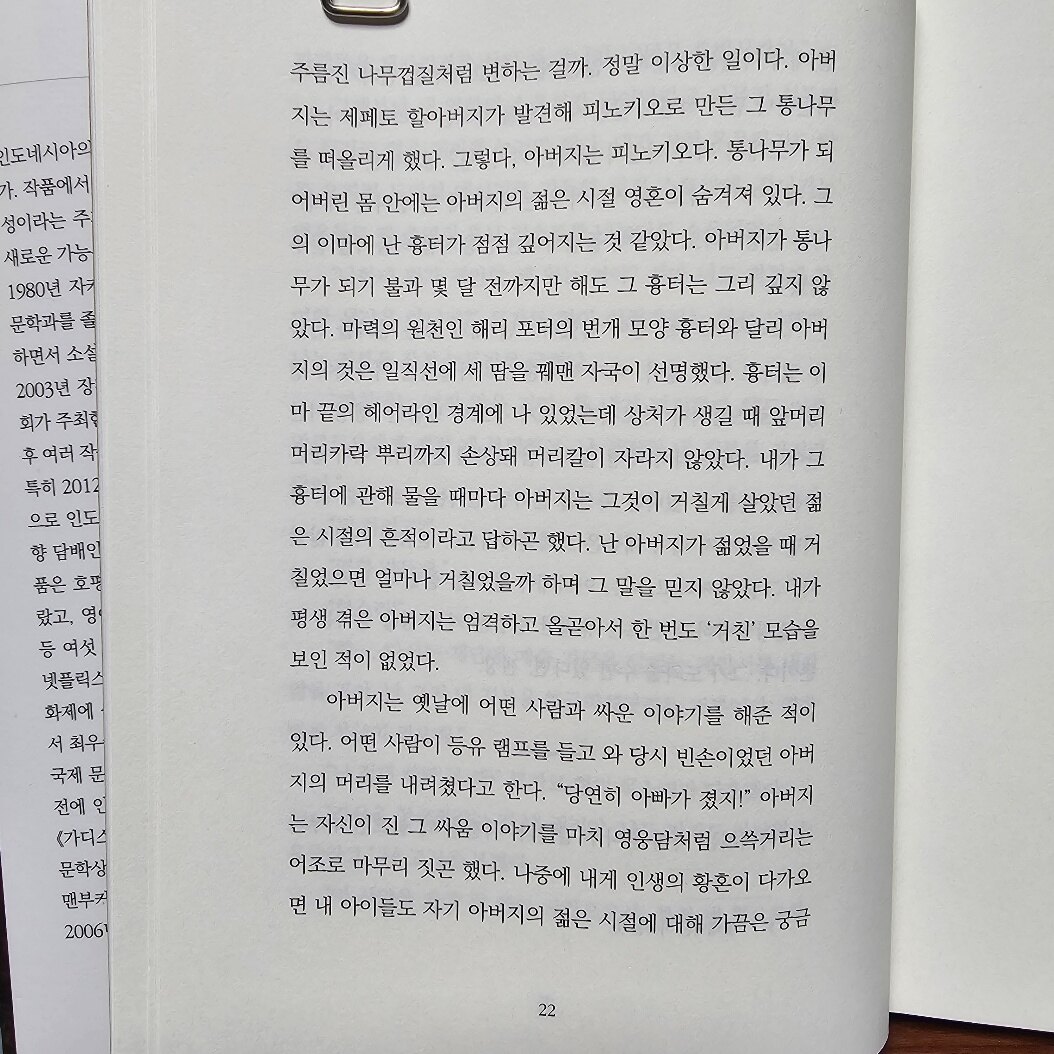 그렇다, 아버지는 피노키오다. 통나무가 되어버린 몸 안에는 아버지의 젊은 시절 영혼이 숨겨져 있다.